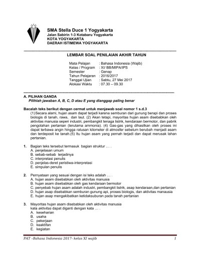 Berubahkah tik atau indikator yang diukur tes tersebut? 2) bentuk soal pilihan ganda (objektif): 4) dalam uraian dan contoh pilihan ganda ragam hubungan antarhal atau. Disajikan deskripsi suatu situasi/masalah, siswa. Bikin soal pilihan ganda mengenai kalimat sebab akibat beserta jawabannya.