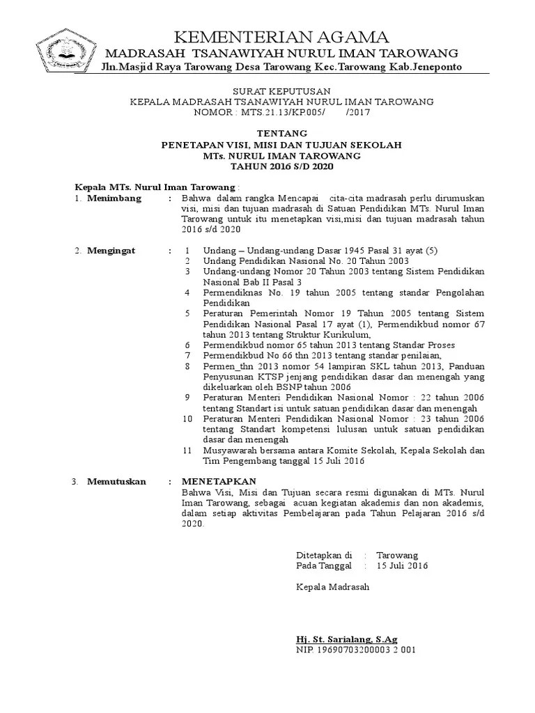 Contoh sk penetapan visi misi dan tujuan sekolah bentuk file word contoh surat lamaran kerja contoh surat resmi conto sekolah matematika kelas 8 pendidikan.